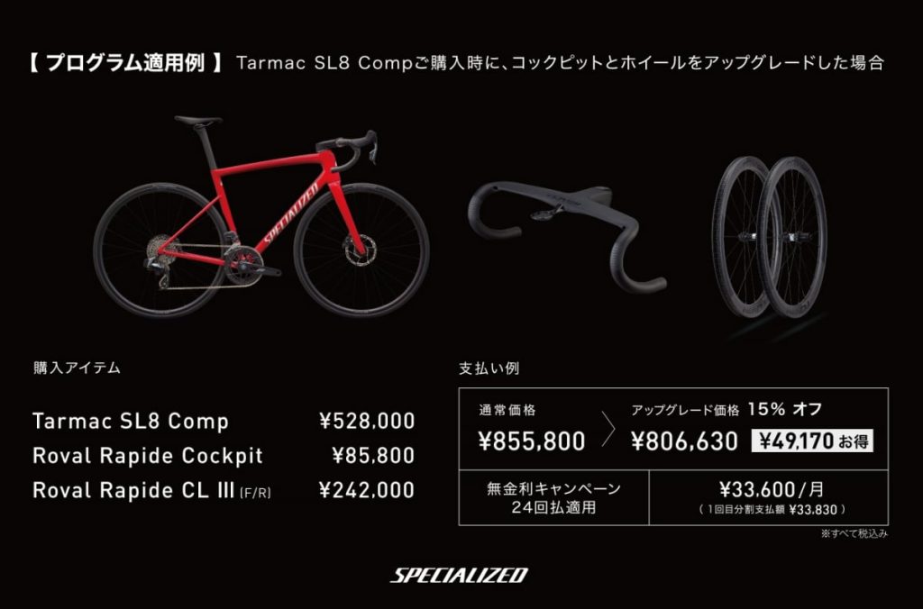 スペシャライズドでは新車購入時にRovalのホイールおよびコックピットを15%オフの特別価格で手に入れられる「Rovalアップグレードプログラム」を3月6日(金)〜5月15日(金)の期間限定で実施します。