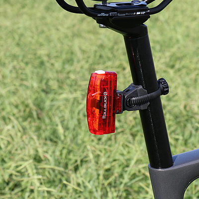 自転車の減速を感知するとモードに関係なく約2.5秒ハイモードの2倍の明るさで点灯するブレーキモード搭載